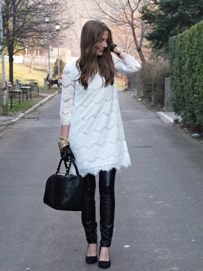 Do you remember when i told you yesterday how much i love my new pants and how great they are for mix&match game? ;) Leather mixed with white lace, accessorized with gold jewelry and studs ... It makes me wanna have a stock of these pants so i can always wear them! ;)
